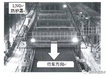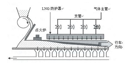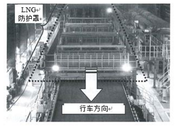 在烧结机实际应用中,为了获得该效果,在规定的范围以规定的浓度喷吹LNG很重要。因此, LNG必须不向外部泄漏,全部喷吹到烧结机内。对此,烧结机厂房大部分只有屋顶,没有四壁等,多为暴露的状态。因此,需要考虑假设强风等吹向烧结机,LNG不泄漏的喷吹方法。
