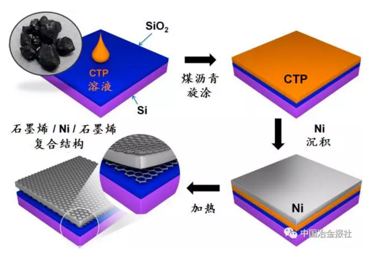 2015年12月份,韩国浦项工科大学(POSTECH)新材料工程系李泰宇教授团队将炼铁过程中产生的煤沥青(coal tar pitch)作为原料,开发出一项可以直接合成电子元件基板用石墨烯的工艺。