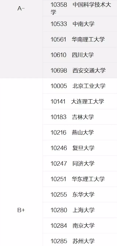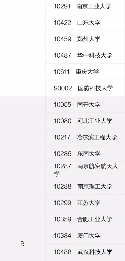 2017年全国高校学科评估结果