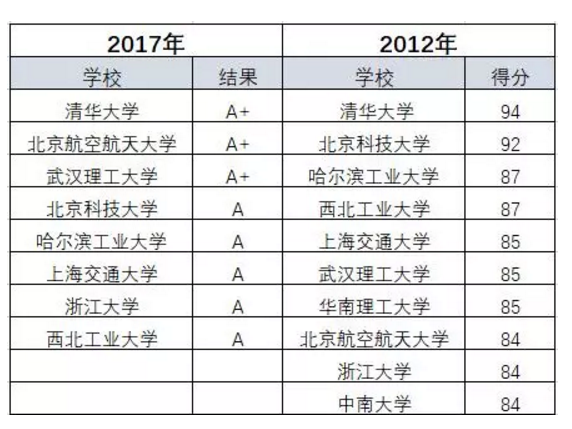 12月28日,教育部学位与研究生教育发展中心公布全国第四轮学科评估结果。下面是2012年和2017年两次学科评估材料科学与工程学科的结果对比。