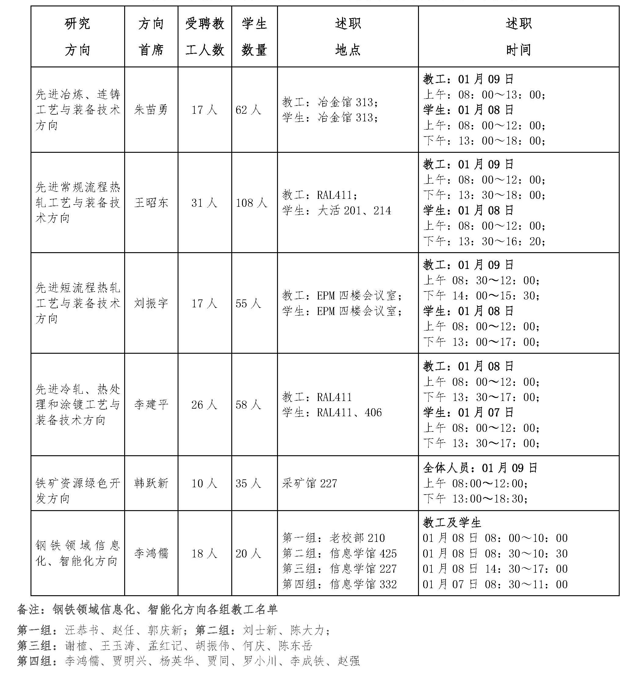 近日,我校钢铁共性技术协同创新中心2017年度由各研究方向组织的自评工作日程表公布,标志着中心所属教职工、博硕士研究生全员进入总结、述职和考评工作阶段。考评时间及地点详见附表:2011钢铁共性技术协同创新中心2017年度考核各方向自评会议安排表。