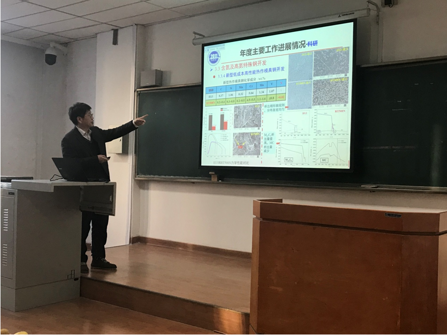 2018年01月09日,2011钢铁共性技术协同创新中心-先进冶炼、连铸工艺及装备技术方向在冶金馆313教室进行了本方向教职工的年终考评汇报。考评汇报会由方向首席朱苗勇教授主持,17名教师重点围绕“高品质连铸坯生产工艺与装备技术”、“资源节约型高性能不锈钢生产工艺技术”和“炼钢原料及二次资源高效利用技术”等重大任务所涉及的基础理论、关键工艺和装备技术的研发工作展开汇报。
