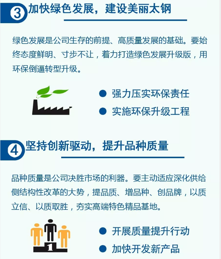 2、各子公司实现“新旧动能转换三年行动计划”既定目标,并力争有更好的发展;莱芜区域升级改造、日照钢铁精品基地、济钢“四新”产业园等重点工程按节点推进;