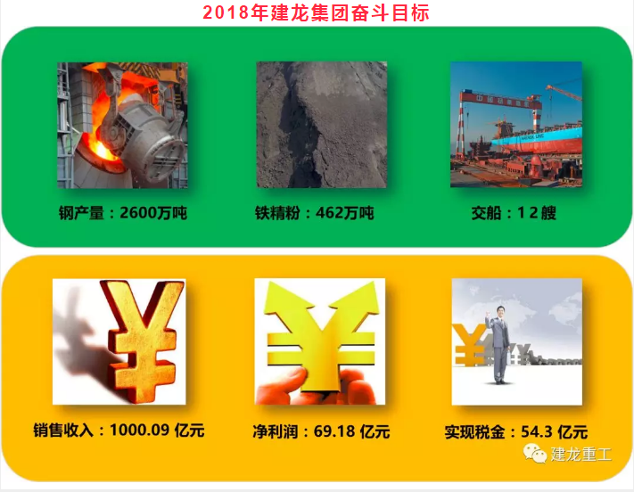 2017年,建龙集团控股公司完成钢产量2026万吨,铁精粉432.19万吨,交船5艘;完成主营业务收入842.93亿元;净利润39.83亿元,上缴税金32.02亿元。