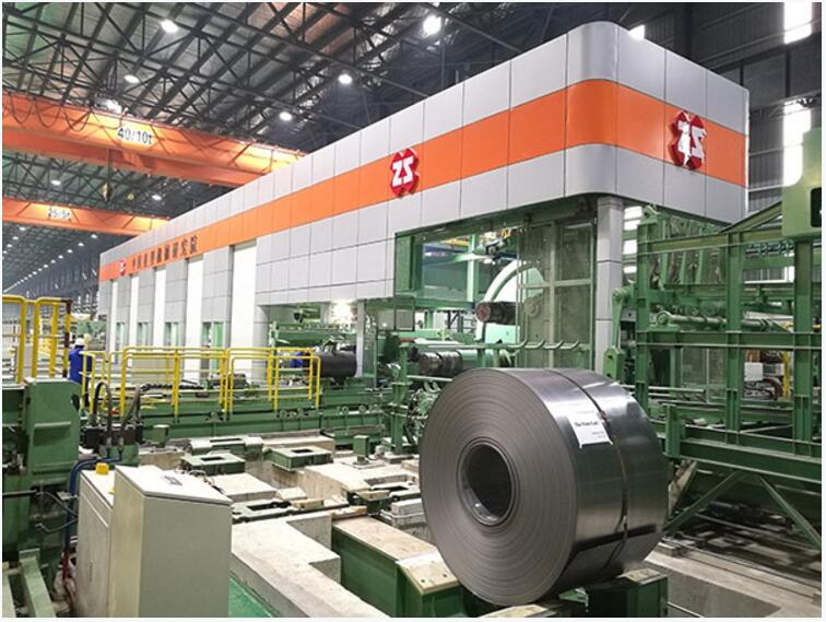 自上个世纪50年代开始,我院一直致力于宽幅高精度板带材轧制工艺技术的研发与创新,完全掌握了国内外冷轧领域的最新技术,实现了核心关键工艺技术与装备能力的国产化。在本机组的研发设计中,为满足高品质超薄镀锡原板高效绿色智能稳定生产,机组采用五机架六辊UCM轧机,配备双开卷系统、激光焊机、水平活套、滚筒式飞剪、双卷筒回转式卷取机、出口运卷系统和离线检查站等,自动化程度达到国际领先水平,入口上卷、穿带、剪切、甩尾定位完全实现一键操作,轧制、分卷、助卷、卷取、卸卷和表面检查全自动控制,机组配备测厚仪、测速仪、张力计、板形仪、焊缝检测仪和纠偏检测装置等,确保机组产品综合质量优良,有助于保证产品的成材率和机组生产率。