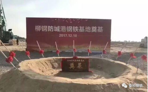 2017年12月18日,柳钢防城港钢铁基地奠基!根据12月8日广西经信委网站上柳钢产能置换的公示内容,柳钢防城港钢铁基地将新建4座3200m³炼铁高炉、7座200t炼钢转炉,规模为生铁产能 1068 万吨、粗钢产能 1470万吨。