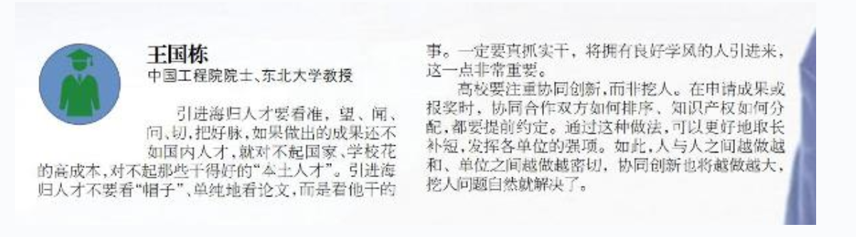 【中国科学报】中国工程院院士王国栋:引进海归人才要把好脉