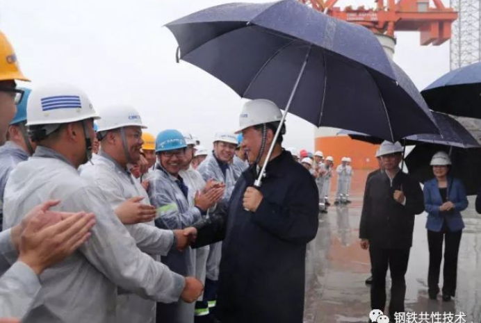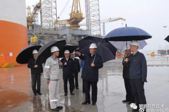 【习近平冒雨考察海洋工程设备制造基地】6月13日下午,习近平冒雨来到中集来福士海洋工程有限公司烟台基地。“蓝鲸1号”钻井平台巍峨伫立、“泰山”龙门吊高耸入云,习近平撑着伞边走边看,详细了解企业走自主创新发展之路、开展高端海洋工程设备自主设计研发制造情况。听说“蓝鲸1号”去年创造了可燃冰开采时间和产量两项世界纪录,习近平鼓励他们继续努力。总书记同现场的工人们一一握手,他说,基础的、核心的东西是讨不来买不来的,要靠我们自力更生、自主创新来实现。我看你们有这个信心,希望你们迎难而上、再接再厉。