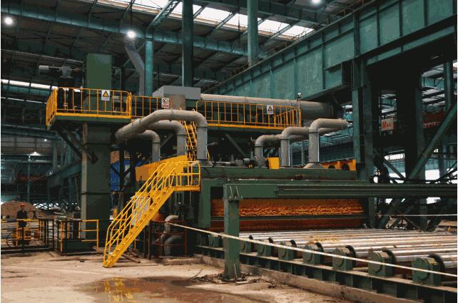湘钢五米宽厚板厂热处理调质线,全长约300米,是生产高韧性、高强度,具有综合优良机械性能钢板的热处理生产线,同时具备淬火、正火、回火热处理功能,主要包括抛丸系统、淬火炉、淬火机和水站等配套设备。经过调质后,产品可提高强度,保持材料的韧性,还可改善材料的切削加工性。