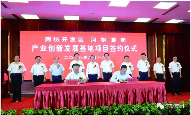 8月16日,河钢集团与廊坊经济技术开发区管理委员会在廊坊会展中心举行签约仪式,河钢集团产业创新发展基地正式落户廊坊开发区。