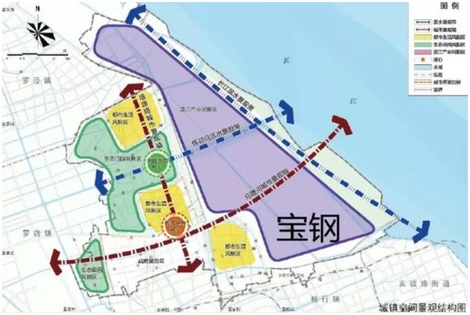 ▲上海市宝山区月浦镇和宝山钢铁集团