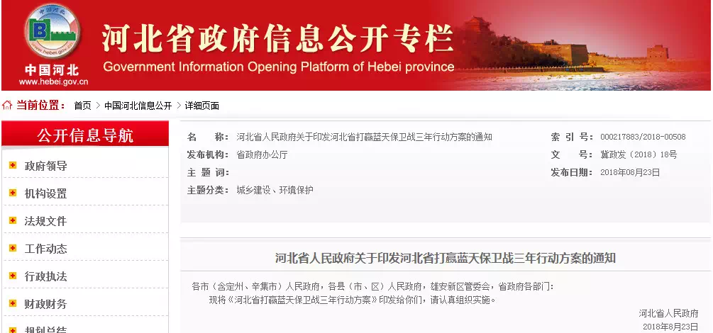 河北省打赢蓝天保卫战三年行动方案。