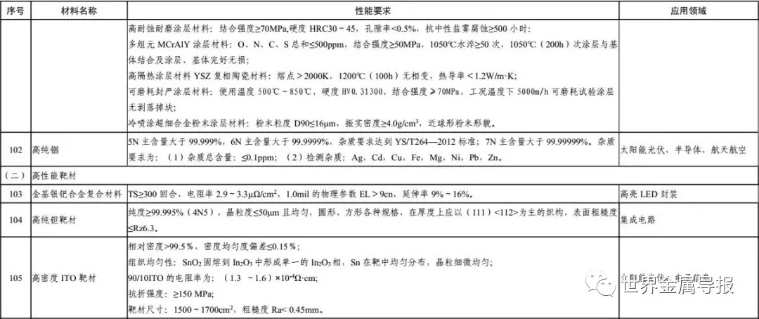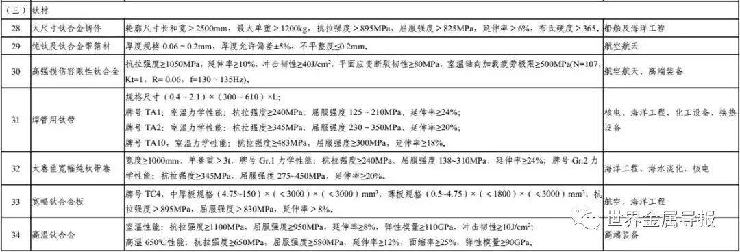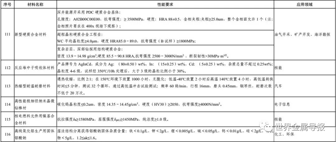 近日,世界金属导报记者获悉,工信部组织修订了《重点新材料首批次应用示范指导目录》,其中包含以下内容: