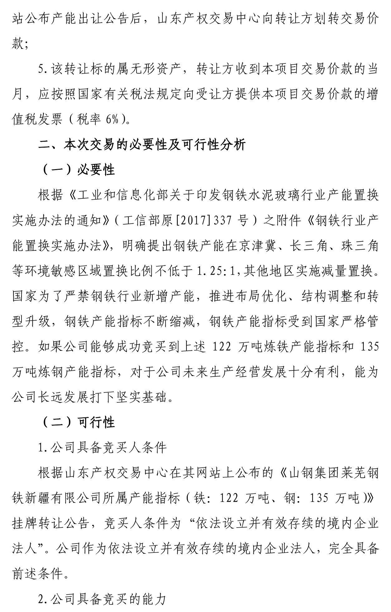 值得注意的是,相关政策也支持此次转让。根据2017年12月31日下发的《工业和信息化部关于印发钢铁水泥玻璃行业产能置换实施办法的通知》文件精神,严禁钢铁行业新增产能,但是可以进行产能置换。