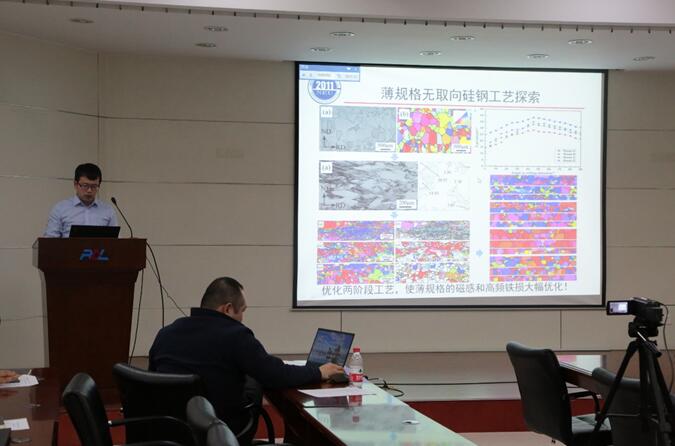 本方向18名教职工分别就2018年及聘期内承担的工作任务进行了汇报,汇报主要围绕“薄带铸轧工艺装备开发建设”、“取向/无取向硅钢机理研究与工艺优化”、“先进双相钢ESP/CSP短流程工业化制备技术”、“特种复合板真空焊接工艺装备研发”以及“超低温容器钢开发”等方向展开。此外,本方向教职工还进行了 “热轧钢材组织性能基因组预测与优化”、“高锰钢孪晶相互作用机理”、“薄带铸轧特种合金制备技术”等方面的预研工作。汇报过程中,方向成员热烈讨论,深入交流,迸发了精彩的思想火花。