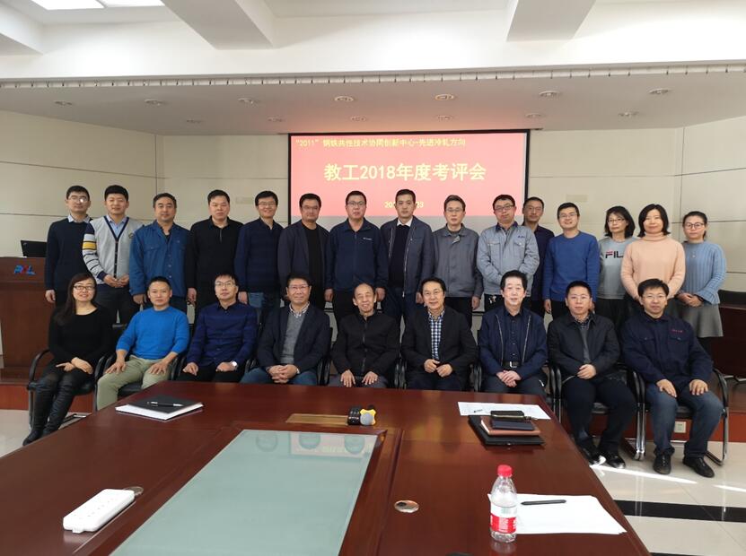 2018年12月23日,2011钢铁共性技术协同创新中心-先进冷轧、热处理和涂镀工艺及装备技术方向在RAL411会议室,进行了本方向教职工的年终考评汇报。汇报由方向首席李建平教授主持,王国栋院士莅临会场并对本方向发展给出指导性建议。本次汇报包括教师27名,重点围绕“高精度冷轧板形和边部减薄控制与装备技术”、“先进热处理和涂镀工艺与装备技术”、“高硅钢薄带温轧工艺装备与控制技术”和“高强塑积高成形性能汽车用钢开发”等关键共性创新技术的研发工作展开汇报。
