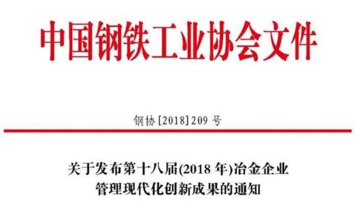 据了解,冶金企业管理现代化创新成果奖由中国钢铁工业协会设立、审定和发布,是鼓励企业管理的改革与创新、促进钢铁工业的健康可持续发展而设立的冶金管理最高奖。该成果奖每年征集、审定、表彰一次。