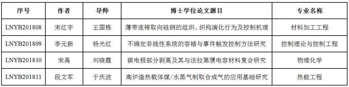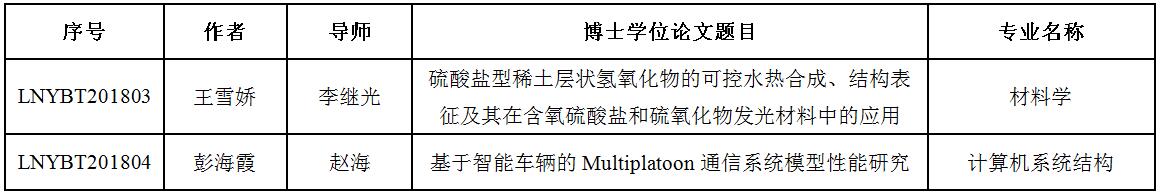 2018年辽宁省优秀博士学位论文