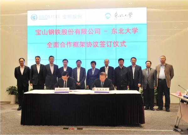 宝山钢铁股份有限公司中央研究院、人力资源部、规划和科技部与东北大学校长办公室、研究生院、科学技术研究院、对外联络与合作处、学生指导服务中心、继续教育学院、工商管理学院、冶金学院、材料科学与工程学院、机械工程与自动化学院、信息科学与工程学院、轧制技术及连轧自动化国家重点实验室、流程工业综合自动化国家重点实验室、智能工业数据解析与优化教育部重点实验室等相关负责同志参加签约会议。