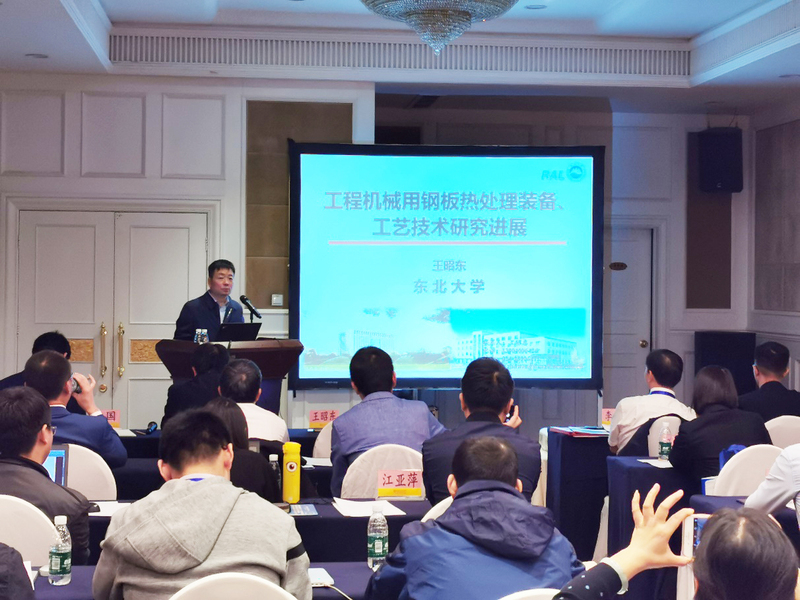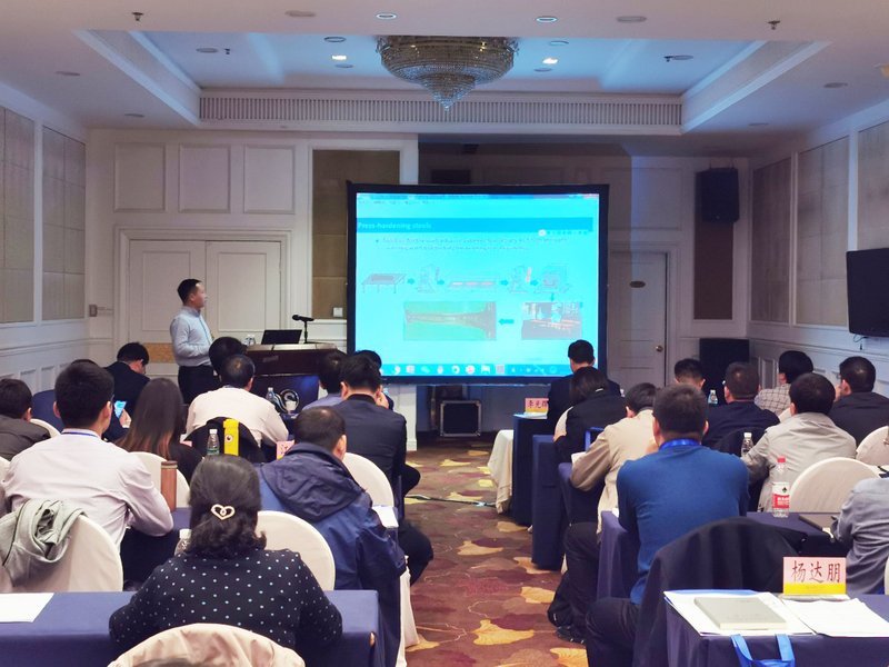 东北大学轧制技术及连轧自动化国家重点实验室王昭东教授、邓想涛副教授详细介绍了工程机械用钢板热处理装备、工艺技术的研究进展,超高强度工程机械用钢Q1300研制开发与工业化应用,新型工程机械用低合金耐磨钢研制开发与应用。易红亮教授课题组的常智渊博士对热冲压成形钢强度与韧性的突破进行了介绍。