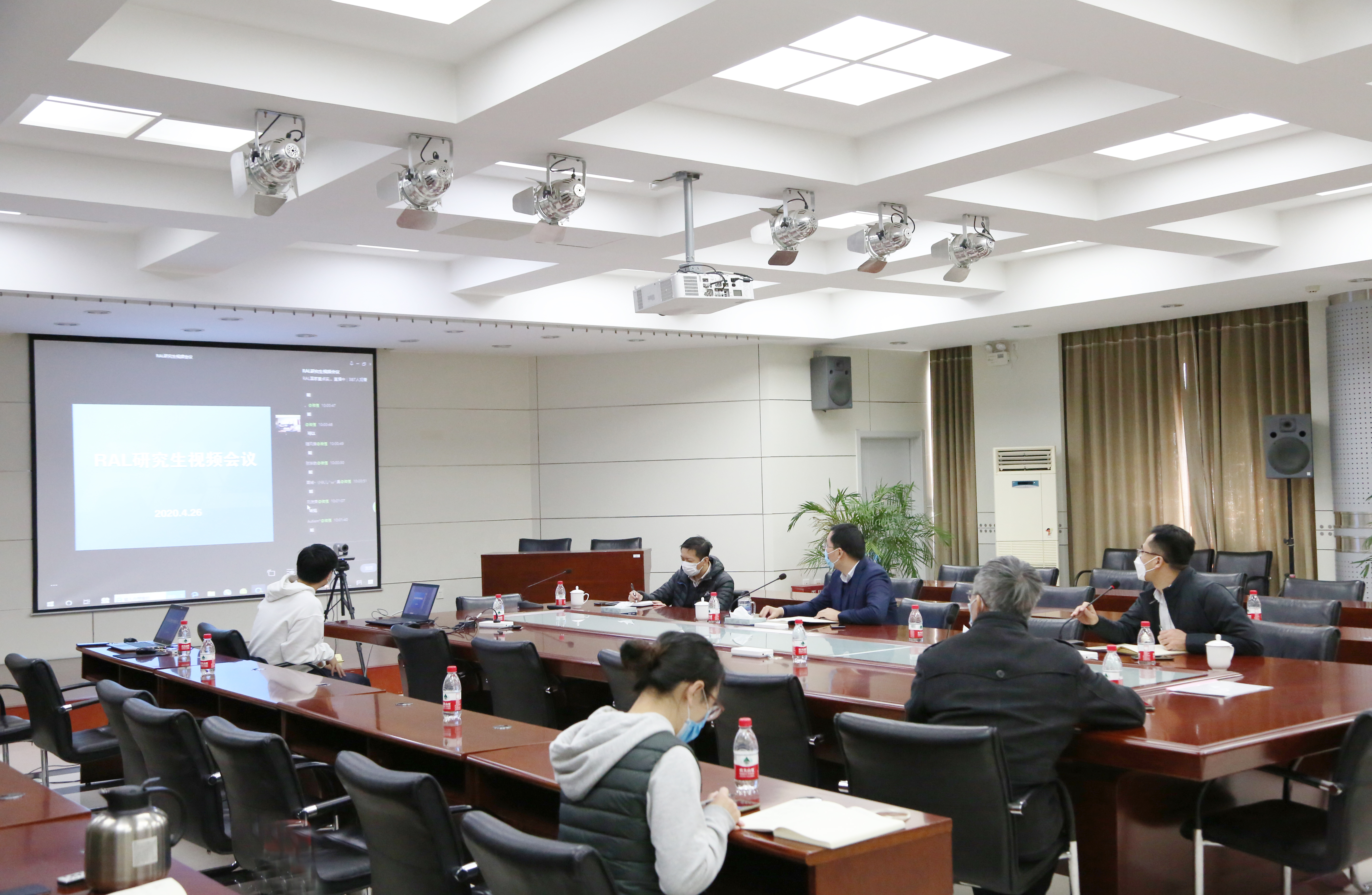 4月26日下午,RAL本科毕业生交流视频会在411会议室召开,实验室主任袁国教授,副主任赵宪明、丛广宇,教师代表高秀华教授,办公室孟丽娟老师出席了现场会议,2020届在实验室开展本科毕业设计的90余名同学参加了网络视频会议,会议由丛广宇副主任主持。