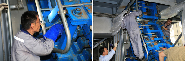 为保障暑假期间实验顺利进行,实验车间的老师和员工不畏酷暑,对实验设备进行了全面检修与维护。