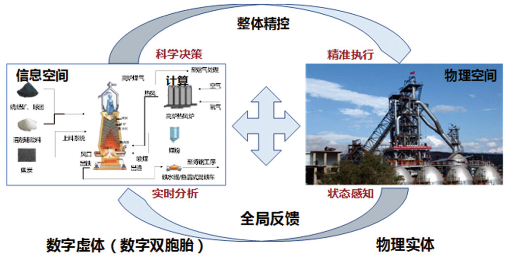 张殿华:目前钢铁工业全流程工序均为“黑箱”操作,内部信息极度缺乏;各工序内部高度相关,牵一发而动全身;孤岛、局部、单点式控制,全流程一体化控制亟待加强且生产数据整合与利用不充分。但是,钢铁工业的数字化信息化基础好,具有提升的条件和强烈需求。“计算嵌入到物料中”,CPS的决策信息必须作用到材料,对材料进行闭环循环赋能,所以钢铁行业是实现“动态数字孪生”的最佳应用场景。钢铁工业对于CPS的重大需求主要体现在全局性与整体性;相关性与保真度;实时性与动态性。因而,钢铁行业需要构建数字孪生系统,向数据驱动转型;通过全局智能优化,实现系统自治;实现全流程与全生命周期一体化控制;构建钢铁工业智能管控平台;实现软件定义的钢铁智能制造。