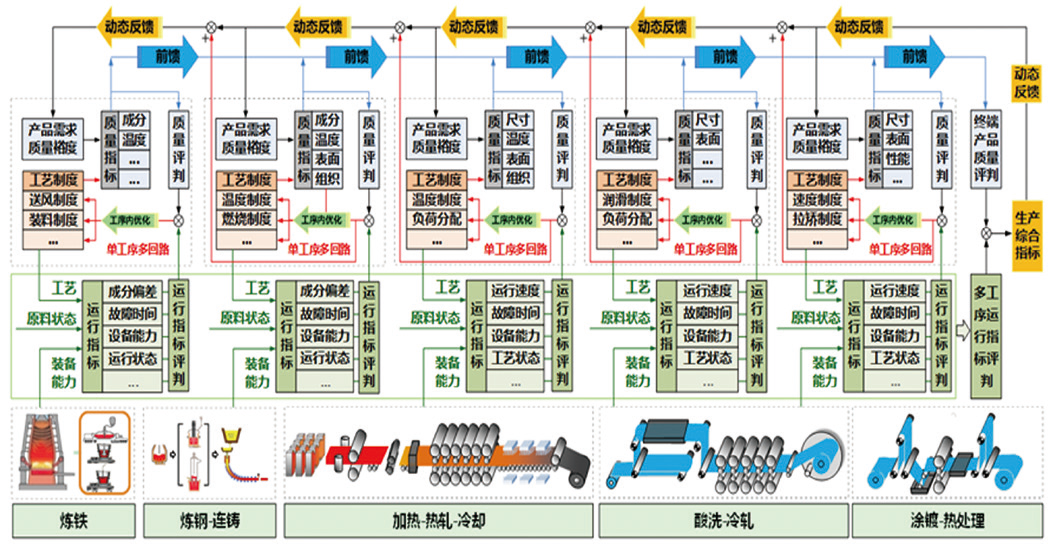 张殿华:对钢铁流程工业来说,就是在5G工业互联网框架上构建基于全局动态数字孪生、以多目标协调优化为特征的智能化CPS。首先,研发全局动态高精度的动态数字孪生,使钢铁全流程“黑箱”透明化。研发全流程高精度、高保真度、全局解耦的动态数字孪生;低延时、快反馈、实时交互的动态数字孪生;自学习、自适应、自组织的动态数字孪生;透明化、可视化的动态数字孪生。提供历史上从未有过的生产过程控制与产品质量的高稳定性、高精度。为新控制功能测试、新产品开发提供重要高效强力支撑。其次,形成各层次的多目标协同优化,实现各层次和全流程CPS。在各单元控制层,突破现有单变量、单因素自动化控制的局限,实现多变量、全局协调优化的智能化控制。在单元的各个层级间,构建检测、优化、控制、决策的垂直方向的闭环控制。在流程上,突破现有单工序、孤岛式控制,构建全流程、多工序、均衡、协调、系统之系统级的CPS系统(图2),实现多个系统级CPS协同的自组织、自配置和自优化。第三,以改进的工业互联网平台作为载体,助力钢铁工业智能化关键技术落地实施。融合现有控制系统软硬件资源和动态数字孪生系统,以数据自动流动使各工序和各系统形成矩阵式网格联通。构建钢铁工业的互联网平台,以边缘层解决数据采集集成和虚实交互、快速反馈、实时控制等关键问题;以平台层解决工业数据处理和知识积累沉淀,形成新型应用开发环境;以应用层集成传统应用软件,开发新型工业应用软件。