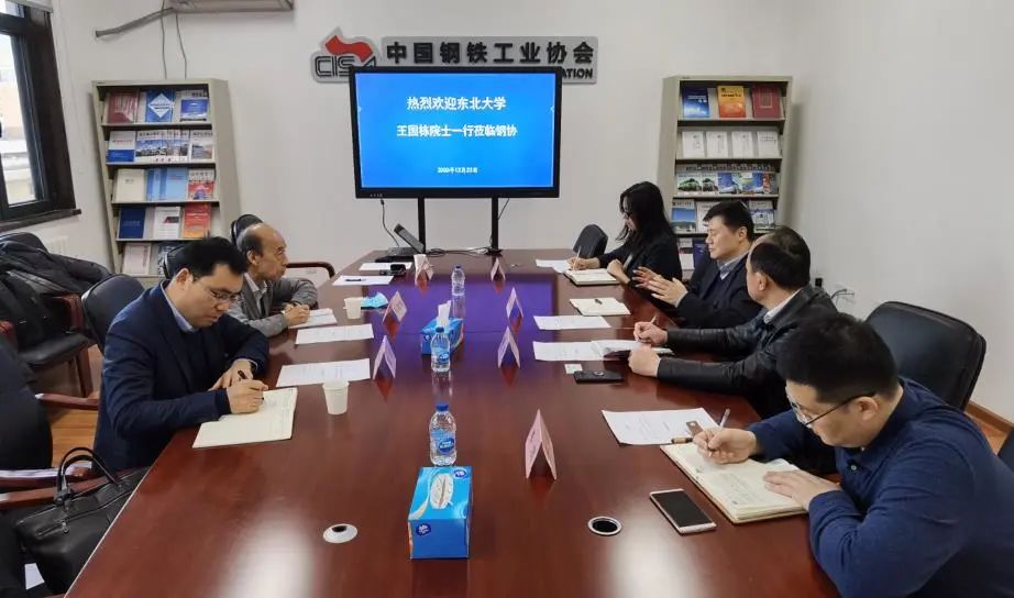 12月23日,东北大学王国栋院士、轧制技术及连轧自动化国家重点实验室(简称:RAL)主任袁国、RAL办公室主任王凤辉一行到访中国钢铁工业协会。钢协党委副书记姜维、副秘书长黄导热情接待,科技环保部、综合部有关人员参与交流。