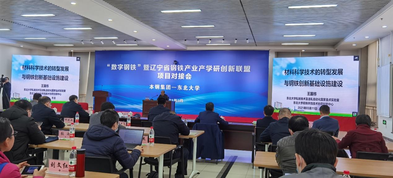 3月11日,东北大学与本钢集团数字钢铁项目交流会在本钢集团能管大楼举行。本钢集团党委书记、董事长杨维,本钢集团党委副书记、副董事长、总经理汪澍,中国工程院院士王国栋,东北大学副校长唐立新出席会议。本钢集团部分领导班子成员、各职能部门、各厂矿、子公司党政负责人及相关技术人员与东北大学科学技术研究院、相关学院、实验室教师参加会议。