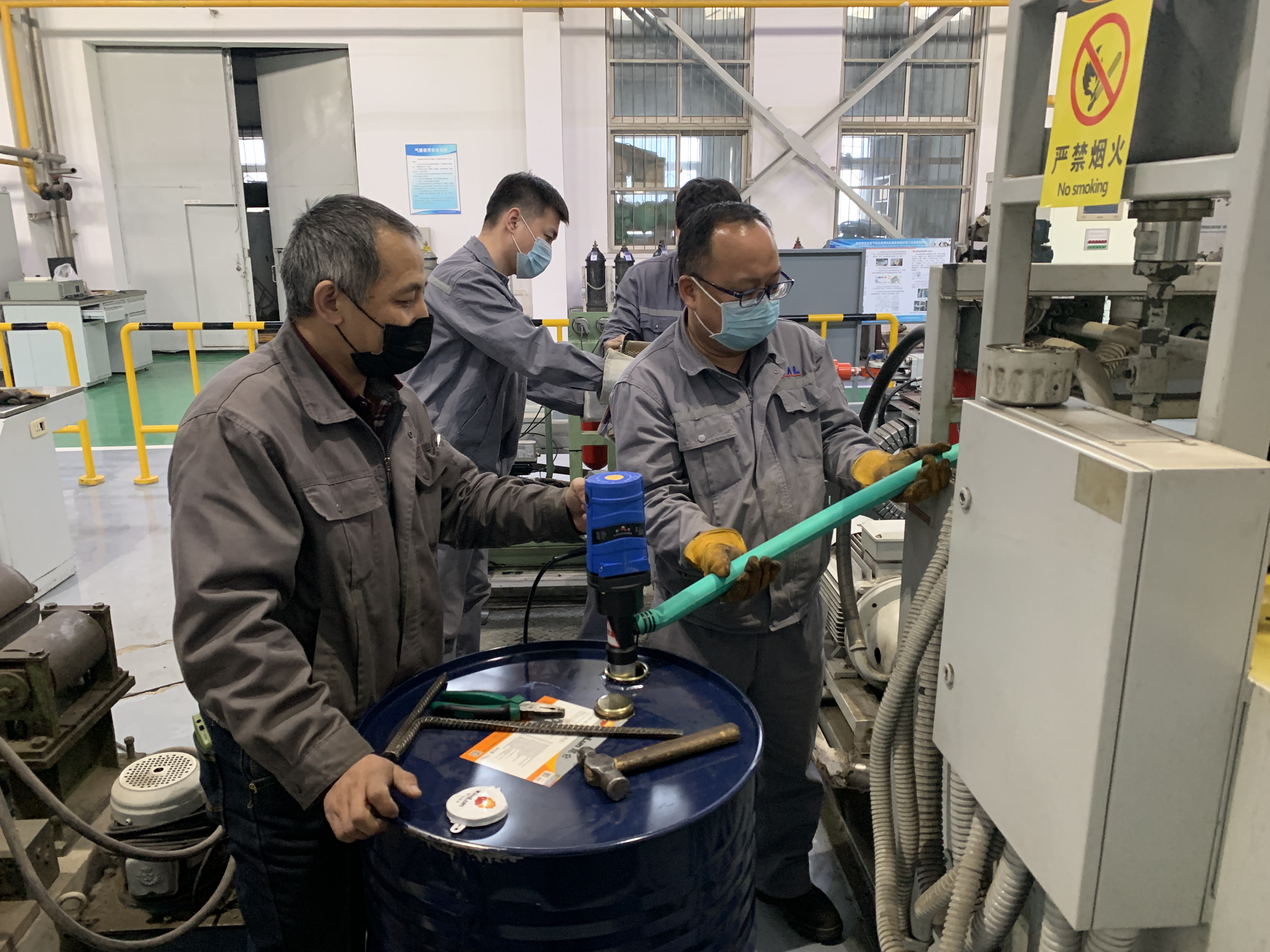 实验车间员工指导学生实验并对实验设备进行检修与维护