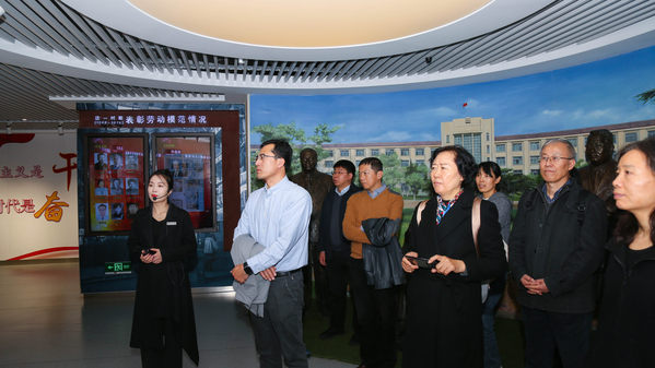 沈阳市劳模纪念馆作为承载城市劳动记忆、弘扬劳模精神的重要阵地,收藏了大量珍贵的实物、图片和文献资料,系统展现了不同历史时期沈阳劳模的奋斗历程与精神风貌。第一枚国徽、第一台水下机器人、第一架歼击机、第一台CT……纪念馆展示了100个沈阳创造的“共和国第一”。从建国初期为工业奠基的老一代劳模,到改革开放后勇闯市场的改革先锋,再到新时代在科技创新、产业升级中发光发热的先进典型,一个个鲜活的人物、一段段感人的事迹,深深触动着在场每一位教职人员。