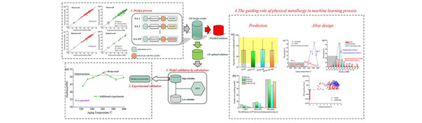 In view of the above bottlenecks in the design of steel materials based on traditional machine learning algorithms, the research team led by Professor Xu Wei proposed a machine learning method guided by physical metallurgy from the perspective of the fusion of physical metallurgy and machine learning algorithms. In this design method, through using the physical metallurgy parameters highly correlated with the strength to perform the dimension enhancement processing on the original data set, not only the physical metallurgical information can be integrated into the machine learning process, but also the original data inherent information can be fully extracted, and the data quality is improved. A predictive model with excellent generalization capabilities is obtained. Then the predictive model and the high-throughput genetic algorithm is optimally combined to form an efficient alloy calculation design framework. Based on the design framework, a new ultra-high-strength stainless steel is successfully designed under the 10^2 small sample data set. Compared with the original data set, the designed alloy system not only achieves strength improvement but also significantly reduces alloy content. In addition, compared with traditional design process without physical metallurgy, this new design method produces obvious improvement in model performance and design efficiency when physical metallurgical information is used in the machine learning performance prediction. The research results provide a feasible idea for the design of steel materials based on small sample machine learning algorithms and the improvement of physical interpretability in machine learning algorithms.